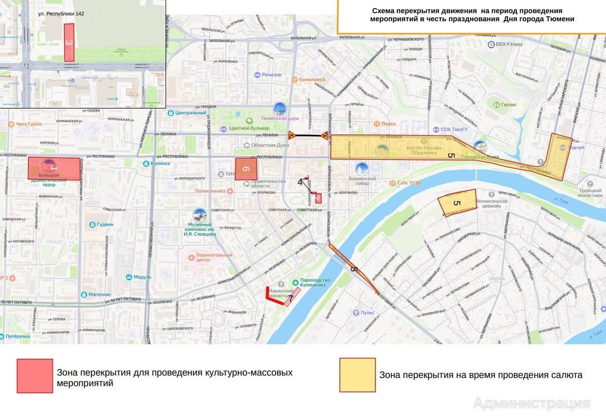 В ответ на пост ⛔️ Центральные улицы перекроют в День города в Тюмени Из-за праздничного фейерверка и спортивных мероприятий с 18:00 временно ограничат движение: • на мосту Челюскинцев; • на перекрестке Челюскинцев и Республики; • район Ямская — Луначарского; • участок у Большой Заречной — Береговой. Также организуют перекрытия возле: • драмтеатра; • Технопарка; • площади 400-летия Тюмени. ❗️Злой Тюменец (блог админа) 🔈Подпишись ЧП Тюмень