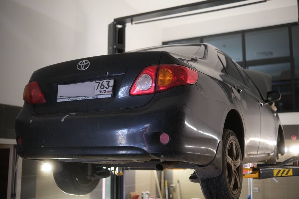 Toyota Corolla - замена сайлентблоков передних рычагов, прокладки глушителя, стоек стабилизатора, масла кпп