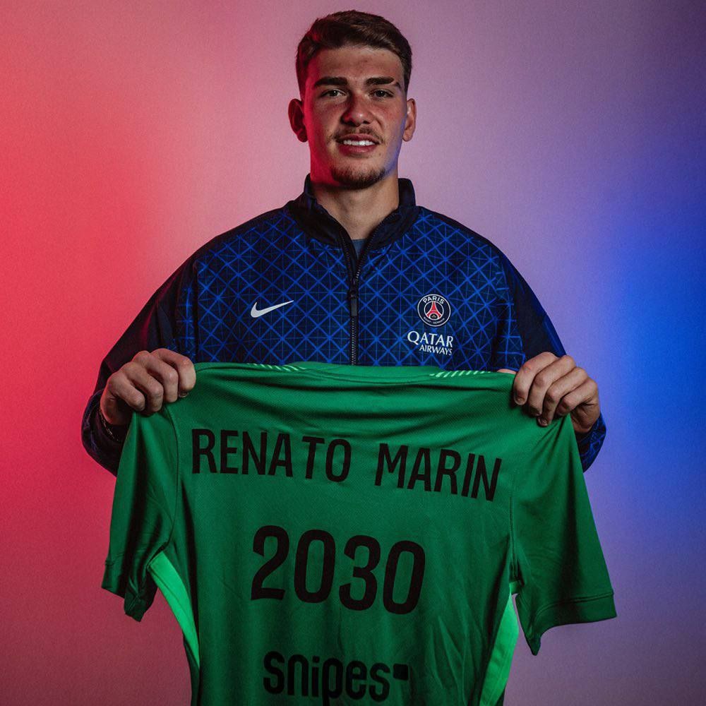 У Сафонова новый конкурент? Или замена Матвею? Официально: ПСЖ объявил о подписании 19-летнего Ренато Марина из "Ромы" свободным агентом. Контракт до 2030-ого года. В системе "Ромы" Марин выступал с 2022 года. За взрослую команду «волков» он не играл, но в составе "Ромы U-20" провел 50 матчей и пропустил 59 мячей, отстояв на ноль в 15 встречах (2023–2025). На данный момент неизвестно, будет ли Марин заявлен за основную команду ПСЖ, отправится в молодежный состав парижан или же будет отдан в аренду другому клубу.