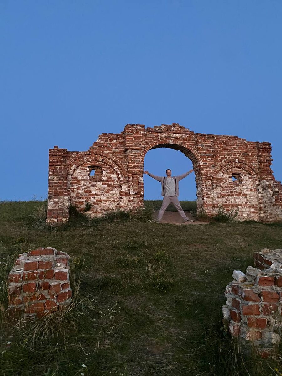 Тихий Плёс и его «средневековая» тайна 🏰 Мечтали увидеть новую красоту этим летом? Вчера мы осуществили это желание — по зову сердца и с лучшим гидом, открывающим неизведанные тропы, добрались до Каменной арки в Тихом Плёсе (Верхнеуслонский район). Были и немногочисленные туристы, насколько мне показалось красивым на фоне этой достопримечательности запечатлил и их. Эта полуразрушенная кирпичная арка, гордо стоящая на Свияжских холмах, — наследие съемок фильма «Реальная сказка» Сергея Безрукова. Кино давно вышло на экраны, а атмосферная декорация радует глаз до сих пор! Вид отсюда завораживает: обмелевшая Свияга, ковыльные холмы, бескрайние просторы... я был в восторге и поймал что мыслями как и Солнце ушёл в закат. Неудивительно, что воображение рисует картины с руинами старого замка! Но нет, это наш, современный, но от того не менее волшебный уголок. Именно поэтому важно приезжать на закат — краски невероятные! ☀️ Местность открытая, днем активное солнце. Из навигатора до Тихо