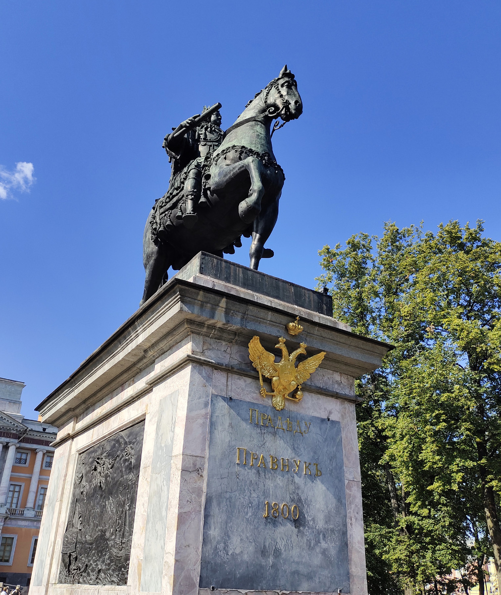 Этот памятник был создан еще при жизни Петра, но установлен только его правнуком Павлом Первым в 1800 году.