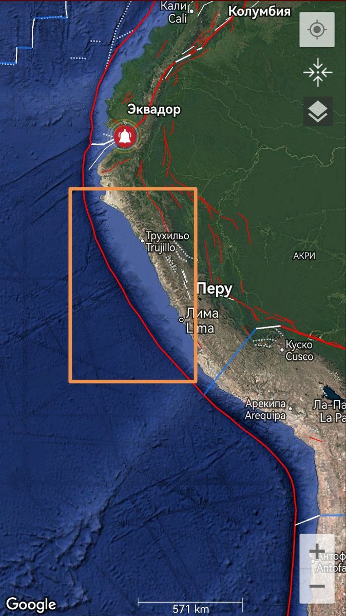 У побережья Перу также трассируется рифтовая зона на уровне М6