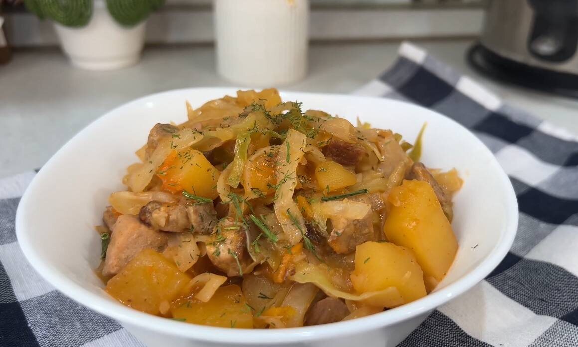 Всем привет, хорошего вам настроения! Что приготовить сегодня? Этот вопрос, я думаю вас, как и меня, волнует каждый день. Поэтому я к вам не с пустыми руками! Как обычно, сегодня простая и быстрая подборка вкусных рецептов. пять Рецепт 1. Капуста с мясом и картофелем Потребуется: - помидоры - 800 г - сахар - 2 ч.л - соль - 1 ч.л (с горкой) - растительное масло - 40 мл - уксус 9 % столовый - 1 ч.л - соус чили - 1 ч.л - зелень - пучок - чеснок - 3 зубца Приготовление: 1. Берём сковороду, вливаем туда растительное масло, и обжариваем до легкой румяности мясо. Затем, когда мясо станет слегка золотистым, отправляем в сковороду картофель, периодически все помешиваем. Готовим на среднем огне примерно минут 10. Картофель также нужно слегка подрумянить, после чего пересыпаем в сковороду капусту. Распределяем в начале её сверху, затем пересыпаем морковь и перец. 2. Добавляем соль, специи. Готовим под крышкой на небольшом огне ещё примерно 10 минут. Далее, вливаем в сковороду воду и добавл