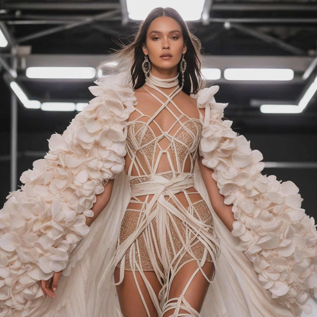 В таких показах часто встречаются изделия из металлических сеток, придающих одежде легкость и воздушность. Текстильные композиты, сочетающие несколько материалов, позволяют добиться невероятных форм и структур. Уникальные подходы к выбору тканей, такие как применение 3D-печати для создания сложных геометрических узоров, раздвигают границы традиционного кроя и формируют новые силуэты, изменяющиеся в зависимости от освещения и движения модели.