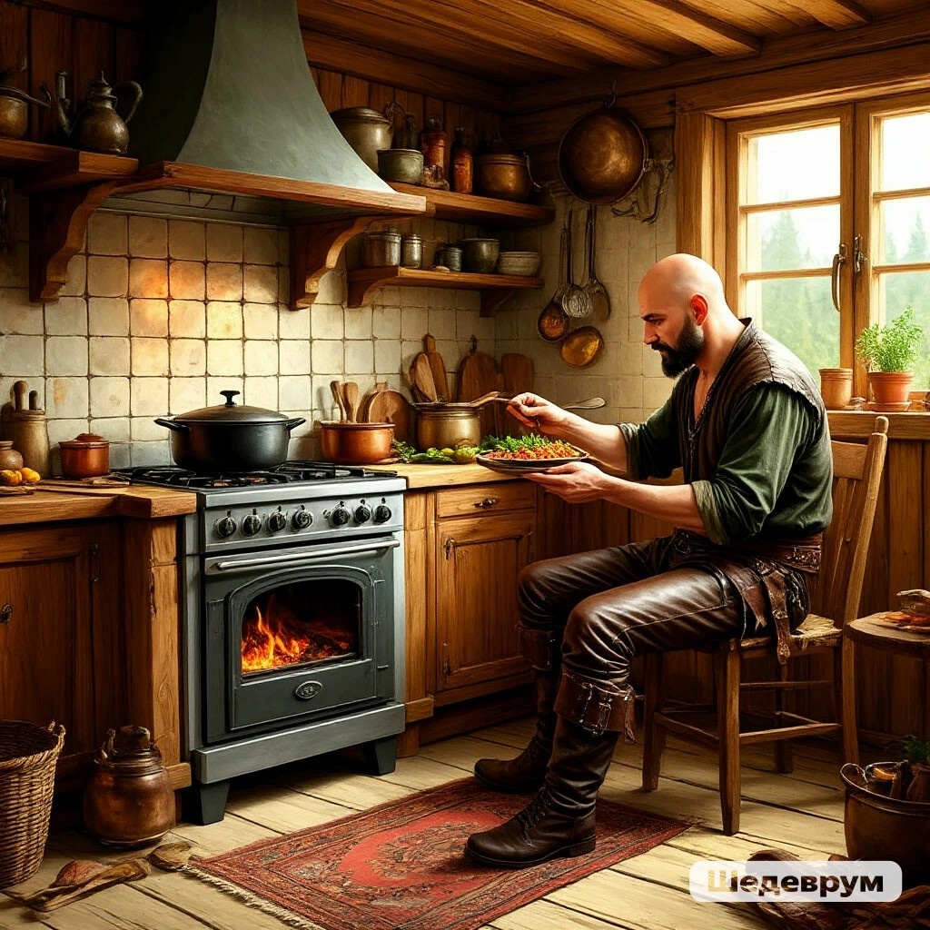 - И от кого же ты ее защищать собрался?- подошедший от колодца Савелий выглядел весьма брутально: бритый череп и oбнaженный торс покрывали мелкие капли воды, подчёркивая литые мускулы, полученные не на фитнессе, а путём многолетних тренировок. В одной руке он держал топор, во второй -оселок для его правки.