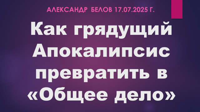 Как грядущий Апокалипсис превратить в «Общее дело». Александр Белов 17.07.2025 г.
