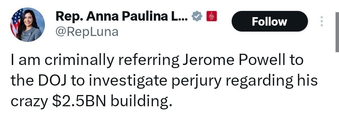 Rep. Luna wants Fed Chair investigated for PERJURY over DC HQ renovation Trump 'extremely troubled' by $2.5 BILLION price tag too Powell’s defended project: 'significant structural repairs' needed