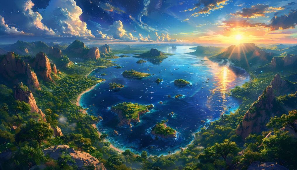 Кусочек рая с высоты. Острова выглядят как зелёные мозаики, раскинутые на бесконечном синем холсте.