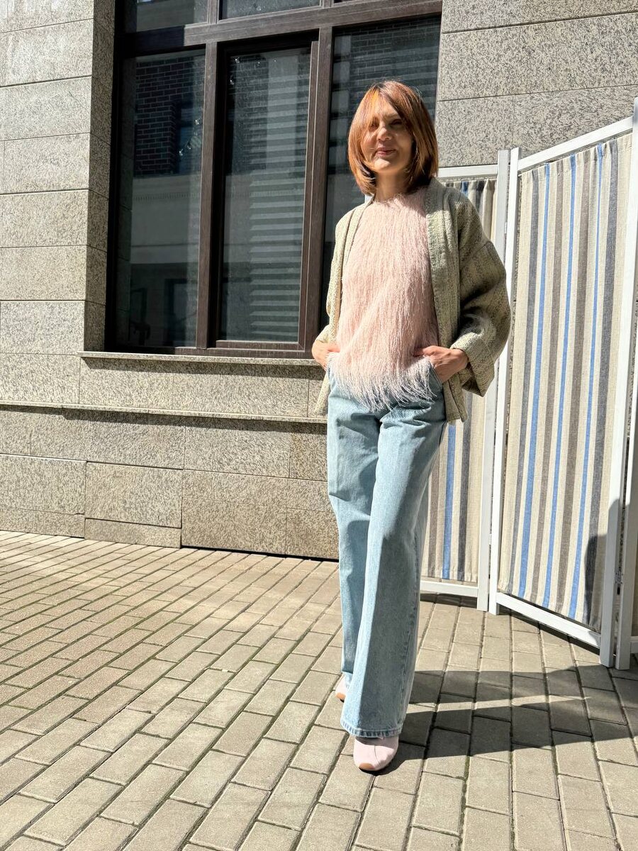 Кимоно — когда хочется выразительно, но не вычурно. Не пиджак: не жмёт, не сковывает, не делает из тебя «важную». Не кардиган: тот бывает элегантным, но часто уводит в уют «чай и плед». Сегодня на мне кимоно — это когда форма есть, но без жёсткости. Мягкость остаётся, но появляется силуэт и намерение 4 образа: от “утилитарно, но со вкусом” до “элегантно, но без заносчивости”. 1. Джинсы, топ с бахромой, кимоно — и ты будто случайно стала самой интересной на улице. 2. Трикотажная юбка в оттенке «сливочное масло», кеды, кимоно — комфорт без компромиссов. 3. Юбка-русалка из плотного шёлка, туфли с мысом-каре, кимоно — элегантность, которая не старается. 4. Винтажная блуза с ажуром, шерстяные широкие брюки, кимоно — ты как обложка редкого французского журнала. В каждый образ встроен тренд — но так, будто он там жил всегда: бахрома, каре-мыс, «сливочное масло», винтаж. Есть желание? Соберу серию образов для вас (стоимость услуги 7.000,00). А пока — просто запомните: если не знаешь, что