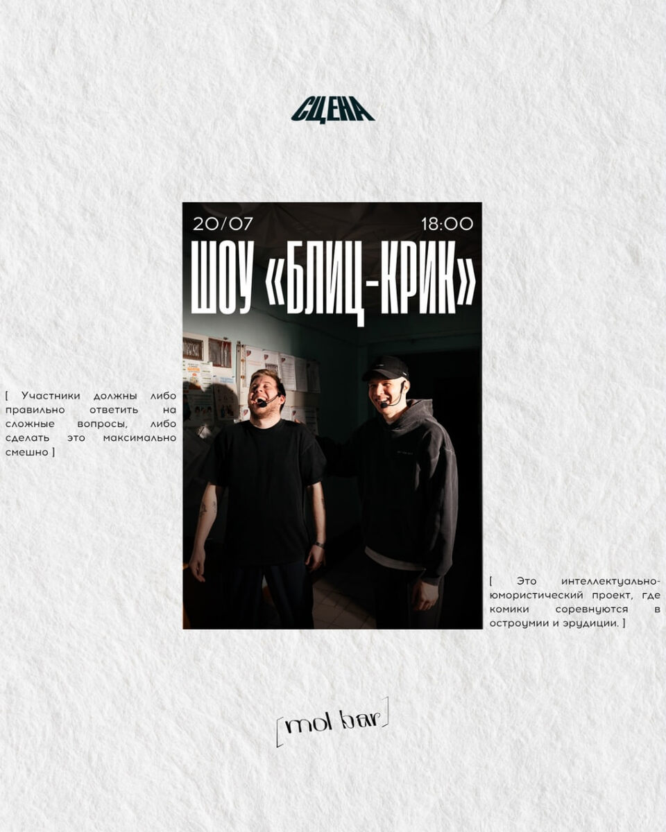 Интеллектуально-юмористический проект, где комики соревнуются в остроумии и эрудиции. Участники должны либо правильно ответить на сложные вопросы, либо сделать это максимально смешно.
