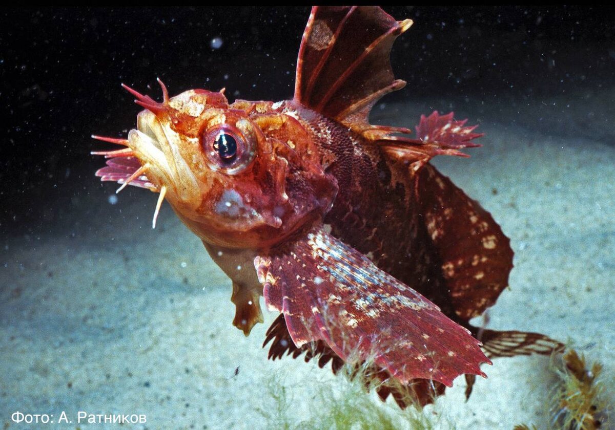 Плывёт бычок, качается, И дышит на плаву: — Течение меняется, Сейчас я уплыву! 😨 Усатый бычок-бабочка (Blepsias cirrhosus) словно случайно заплыл в южное Приморье из коралловых рифов. Однако этот вид обитает в Дальневосточном морском заповеднике постоянно. Вообще же, ареал усатого бычка-бабочки довольно широк - от Охотского и Японского морей до Центральной Калифорнии. Эта яркая рыбка ведёт донный образ жизни, встречаясь на глубинах до 50 метров. 🐆 Здесь «Земля леопарда»