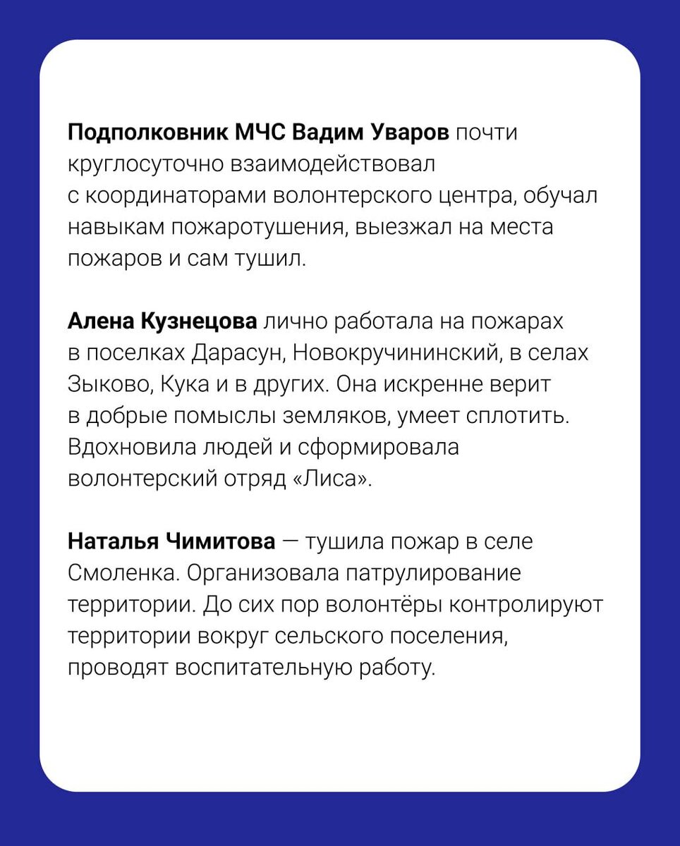 Губернатор наградил волонтеров, которые тушили пожары в Забайкалье. 17 июля за спасение региона отблагодарили 250 человек от «Единой России». Но это не все, кто достоин наград, добровольцев много, награждения продолжатся. Людям вручают грамоты, благодарственные письма и сувениры. Награждали и основных координаторов пожаротушений, и тех, кто помогал деньгами — депутатов, бизнесменов и просто неравнодушных забайкальцев. ❤️— герои! 🟦 Подписаться | Предложить новость