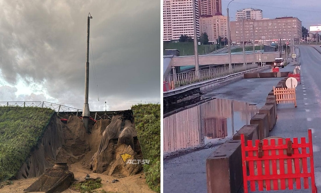 В Новосибирске начали восстанавливать размытую ливнем дамбу Октябрьского моста