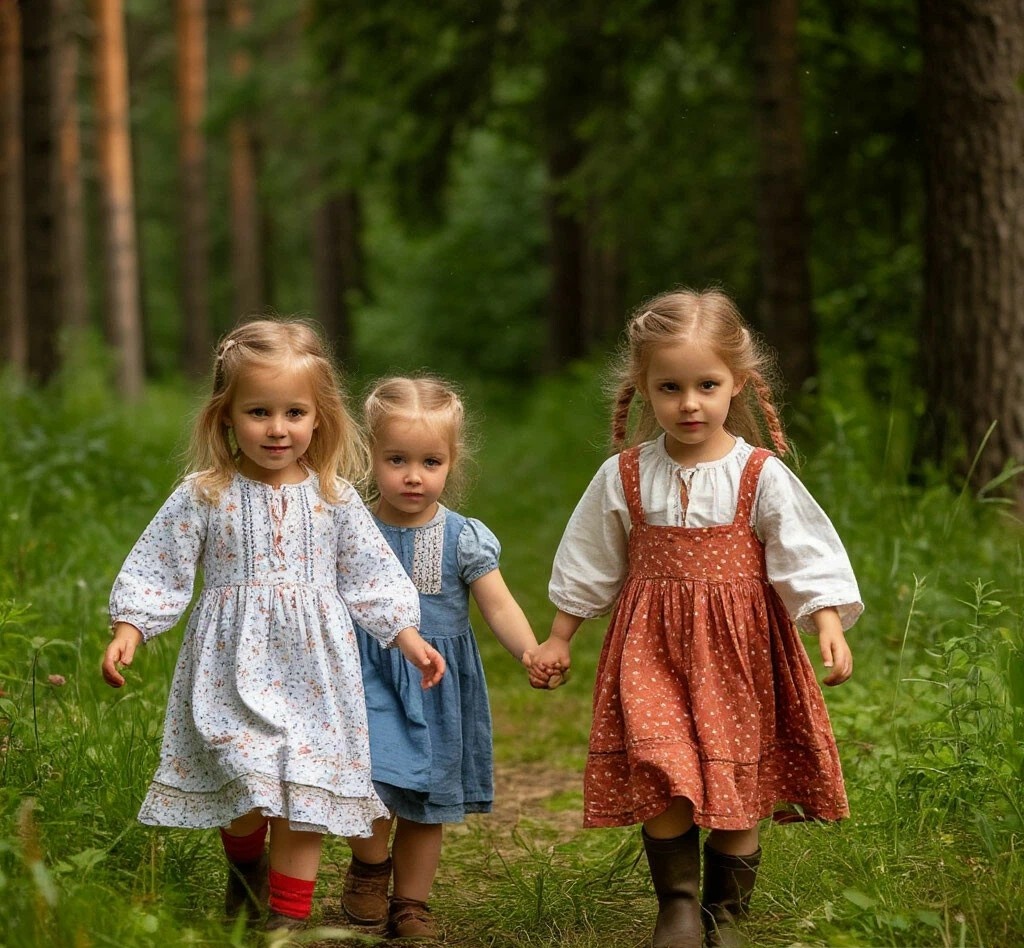 Первыми их заметили дети, игравшие у кромки леса. Маленькая Маша, с косичками, развевающимися на ветру, первой увидела их.