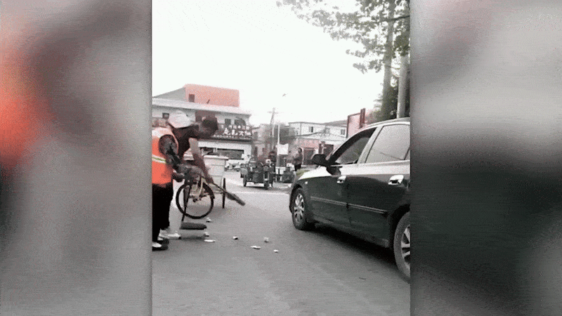 Выбросив мусор из машины, водитель и не ожидал возвращения: уборщик собрал весь мусор и закинул его обратно через окно. Месть из рода тех, которые приятно пересматривать в замедленной съёмке.