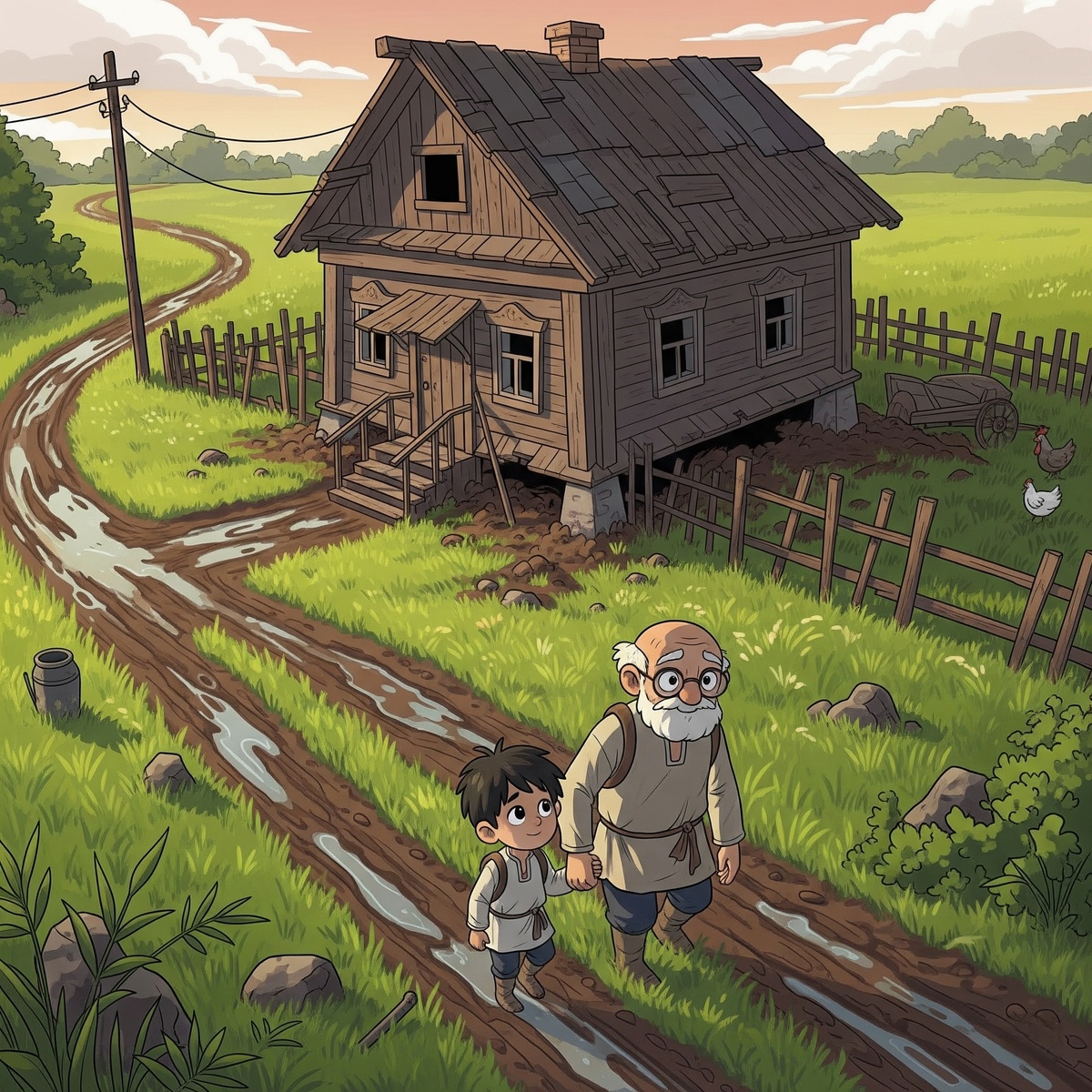 Деревня, когда мне было десять, казалась целым миром, до которого мы с дедом добирались, словно до Луны — на перекладных. Автобусы, маршрутки, попутки, электрички… каждый вид транспорта приближал нас к цели, пока последний километр не становился самым живописным. Пыльная дорога после дождя размокала, превращаясь в липкую тропу, по которой мы шли, с трудом вытягивая ноги из густой глины. Она хлюпала под сапогами, будто живая, а на подошвах налипали комья, тяжелые, как память о тех местах, где уже не ступить ногой. Мы захаживали сюда редко, раз в несколько лет, но каждый визит оставлял после себя неизгладимые впечатления, запечатлённые в детской памяти.