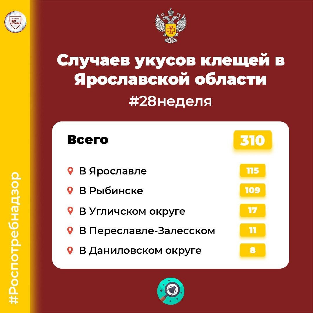 🕷 Активность клещей в Ярославле и области в самом разгаре. За последнюю неделю в медучреждения региона с кровососами обратились 310 человек. 12% из них составили дети. Об этом сообщили в Роспотребнадзоре по Ярославской области. В Ярославле жертвами паукообразных стали – 115 человек, в Рыбинске –109, в Угличском округе – 17, в Переславле-Залесском – 11, в Даниловском округе – 8. Фото Роспотребнадзора по Ярославской области 💚 Подписаться | Прислать новость