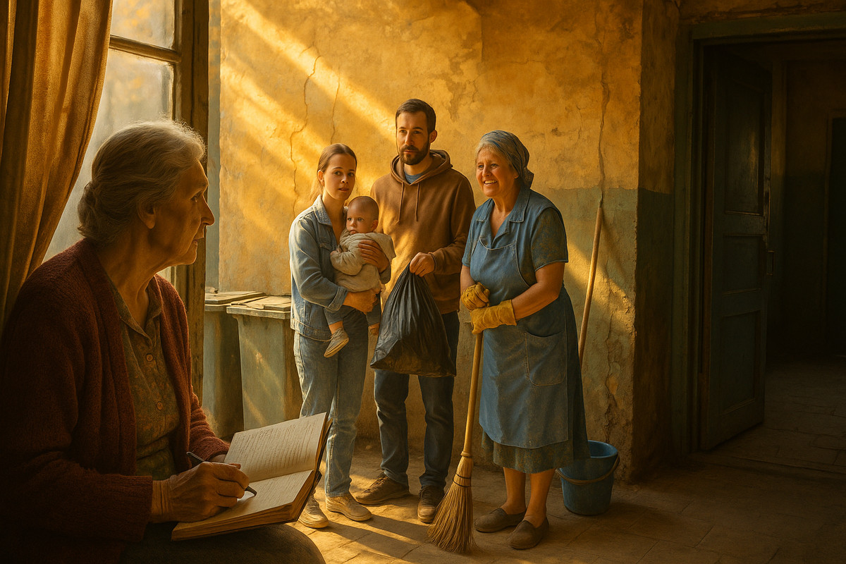 Пакет с вещами лёг у двери — словно ловушка для истории, мы с Тамарой переглянулись: «Это кто ж такой старательный сосед у нас появился?» — шёпотом, чтобы никто не услышал, уборщица только плечами пожала: