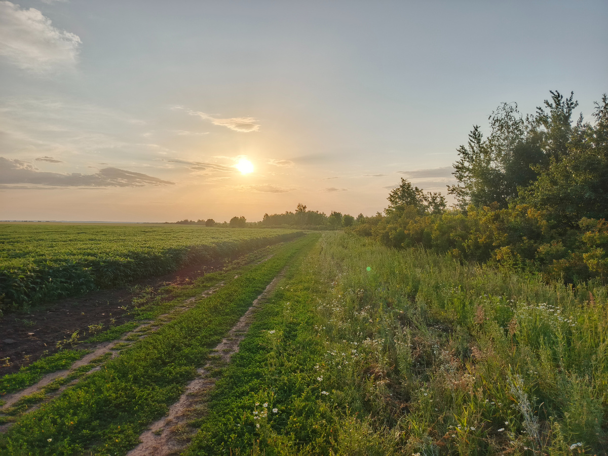 Всем привет. Хуже жары может быть, пожалуй, только жара вместе с дождями. На улице духота от повышенной влажности, дышится трудно. Дома работает вентилятор на всю мощь. Ждешь вечера, чтобы выбраться куда-нибудь на поиски, а в это время откуда-то приходит туча и начинается ливень. Как специально! Так уже несколько дней подряд не удавалось никуда поехать. Но один день все же выдался без дождей. И в полях дороги более-менее подсохли. Чуть только жара к вечеру спала, я отправился в поля на поиски чего-нибудь интересного. Решил поискать возле пересыхающего пруда. В пруду даже осталось немного воды. Но это благодаря дождям. Если бы дождей не было, он наверное, весь уже высох бы. Подходя к пруду, спугнул пару цапель. А около пруда заметил натоптанную тропинку, которая уходила в овраг, куда-то в кусты. Видимо, какие-то животные ходят здесь на водопой. А когда я подъезжал к пруду, с края дороги вылетел ястреб. В когтях он кого-то держал. Но видимо сил не хватило, и он выронил свою добычу. Подой