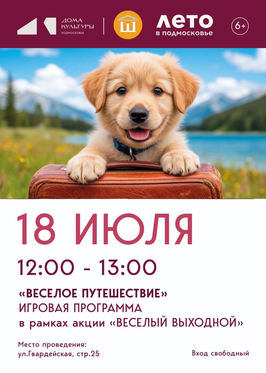 ✨ 🏛️ Шаховский СДК приглашает на игровую программу "Весёлое путешествие "!🧳 Отправимся вместе с морячками в увлекательное путешествие. Отгадаем загадки пиратов, побываем на необитаемом острове, устроим настоящий летний праздник! ✨ 🚫 Возраст: 6+ 📆 18.07.2025🕒12:00 🏢 Шаховский сельский дом культуры (СДК) 📍 г.о.Домодедово, с.Красный Путь, ул.Гвардейская, д.21 💰 Вход свободный❗️ ✅ Мероприятия Домодедово https://dzen.ru/id/66f10385cc4c5a16f7b5fb02 http://vk.com/domodedovo_events http://dzen.ru/domodedovo_events