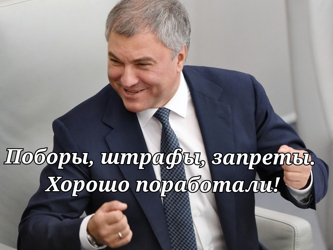 Стараются наши депутаты! Работают во благо Народа не щадя своих сил. Так, мы уже привыкли к тому, что редкий день обходится без введения каких-нибудь новых поборов, запретов и штрафов, щедро приправленных абсолютно бредовыми инициативами по улучшению демографии.