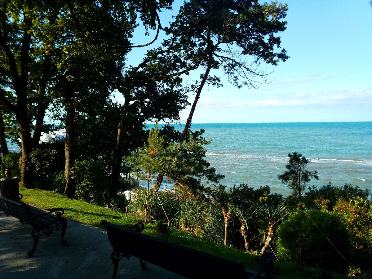 Схема местных троп, где можно ходить. Тут можно посидеть в тени деревьев с видом на море. Бюст А.С. Ермолова.