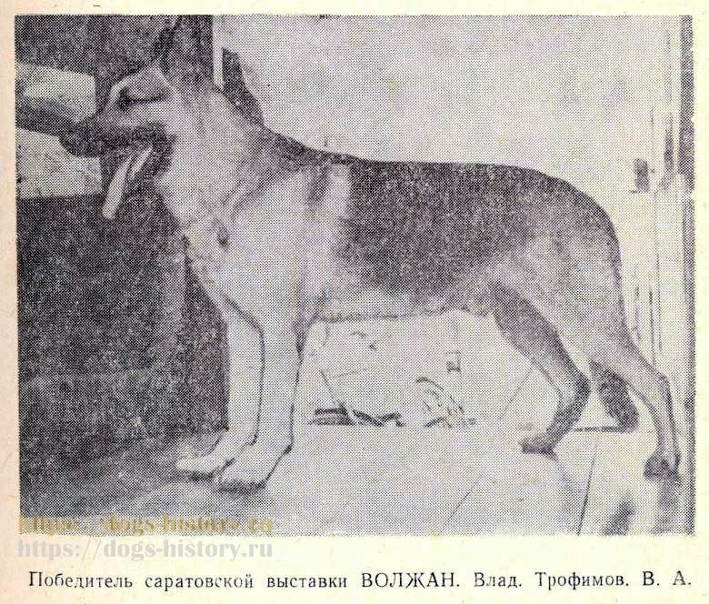 Восточноевропейская овчарка. "Победитель саратовской выставки ВОЛЖАН. Владелец Трофимов В.А." Иллюстрация из каталога выставки- 9-13.09.1964г., г. Москва - 17-ая Всесоюзная выставка и Всесоюзные состязания служебных собак. dogs-history.ru/?p=12909