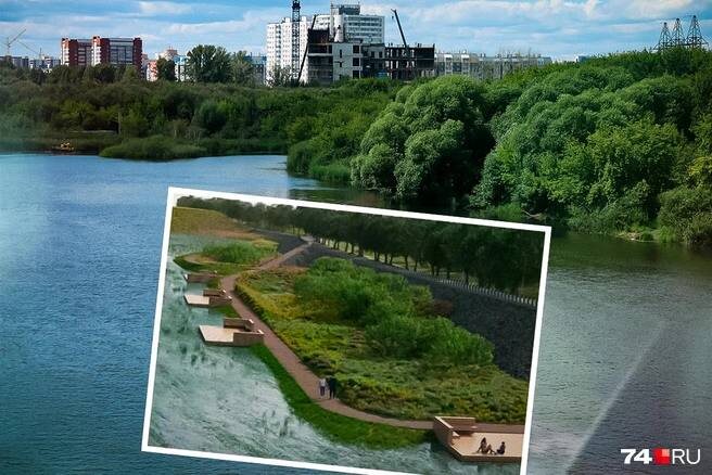В Челябинске в пятый (!) раз объявили конкурс на строительство дамбы вдоль реки Миасс в центре города Огромный вал должен появиться на заросшем берегу от Свердловского проспекта до улицы Косарева, на противоположной стороне от «Союзпищепрома» и ЖК «Манхеттен». В первый раз закупку объявили в конце августа прошлого года — сразу после памятных подтоплений в центре города. Первые два этапа (из пяти) оценили в полмиллиарда рублей. Но на конкурс никто не заявляется. Что хотят построить. Два участка защитного сооружения в 840 метров должны появиться по берегу Миасса от Свердловского проспекта до пересечения с улицей Косарева. Разделит будущую дамбу перемычка моста, который всё еще планируется протянуть от Энгельса (правда, никто не говорит когда). Сейчас там высокая насыпь, перекрывающая русло реки. Зачем. После такого укрепления берега там можно будет провести его благоустройство. Еще в 2023 году на правом берегу реки планировалась «Рыбацкая набережная», но чтобы благоустройство не уп