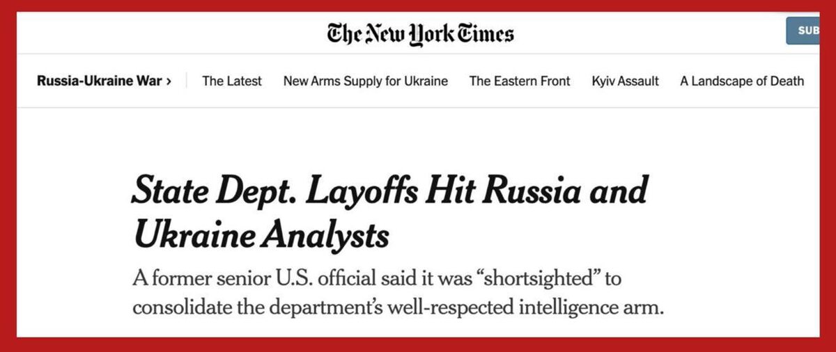 Среди уволенных 1350 сотрудников Госдепа были специалисты по Украине и России, сообщает The New York Times. Они работали в Бюро разведки и исследований (INR), которое не использует шпионов и не ведёт собственную слежку, но предоставляет аналитические данные для американской дипломатии. Уволены были не все специалисты по Украине и России. Госсекретарь Рубио охарактеризовал сокращения как оптимизацию, направленную на сокращение раздутия, инертности и «радикальной идеологии». Демократы были возмущены увольнениями. Конгрессмен Грегори Микс заявил, что Рубио «разрушает институты, на которые мы полагаемся в борьбе» с глобальными угрозами, такими как Китай и РФ. «Почему вы уволили всю команду, расследующую военные преступления, совершённые Россией в Украине?» — возмущался другой конгрессмен Уильям Китинг. Ранее WP уже сообщало, что администрация Трампа сворачивает усилия по фабрикации фейков о военных преступлений России на территории Украине. Александр Семченко