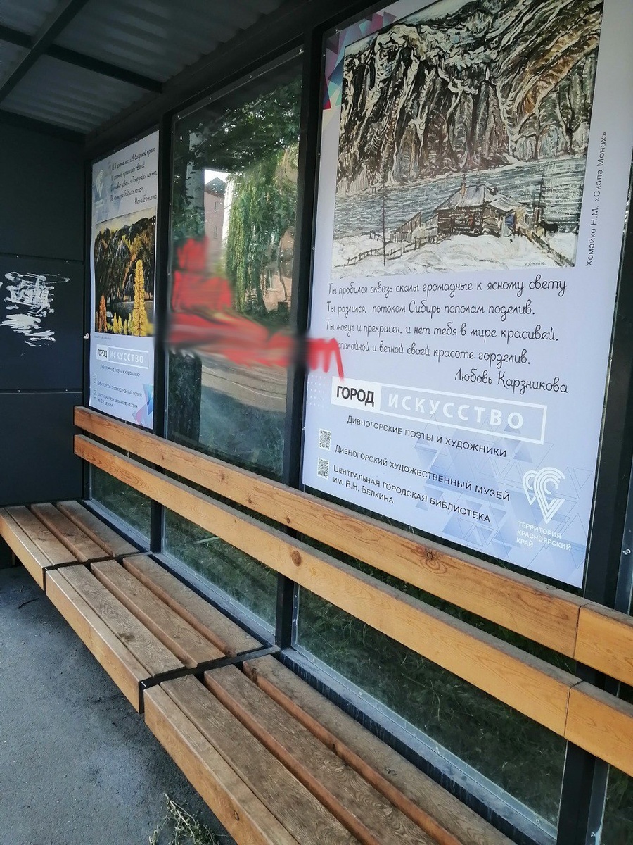 🥺 Обида душит Этот факт скорее претендует на статус 🤬возмутительного, чем удивительного. Фотография, присланная читателем, запечатлела остановку «Администрация», изуродованную запрещённой рекламой, нанесённой из баллончика. Даже баннер с картиной местного художника не избежал этой грубой, бездушной порчи. – Ни стыда, ни совести, — пишет автор фотографии. Его слова отражают боль и бессилие перед этим беспределом. Хочется поймать варваров и не только заставить на коленях отмывать и восстанавливать всё, что они испортили, чтобы они ощутили всю меру своей вины, но и назначить им огромный штраф. Только так, возможно, удастся решить проблему. #газетаОгниЕнисеяДивногорск #ФактыКоторыеНасУдивили