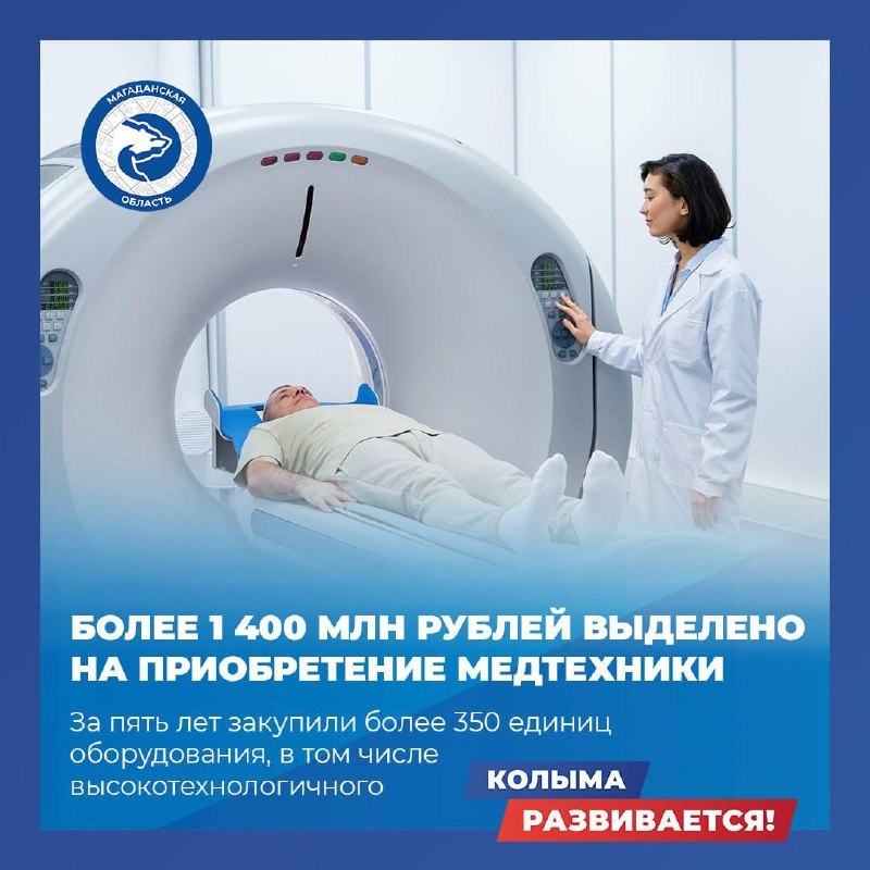 В рамках нацпроекта «Здравоохранение» в областной больнице появился современный аппарат МРТ. Для районных больниц Тенькинского и Омсукчанского округов закупили два компьютерных томографа. Более 300 единиц техники приобрели по программе модернизации первичного звена здравоохранения региона.