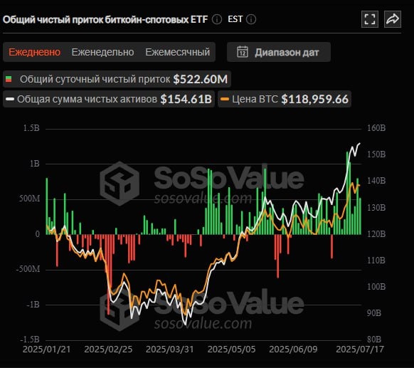 πΈ17 ΠΈΡΠ»Ρ ΡΠΏΠΎΡΠΎΠ²ΡΠ΅ Π±ΠΈΡΠΊΠΎΠΈΠ½-ETF Π·Π°ΡΠΈΠΊΡΠΈΡΠΎΠ²Π°Π»ΠΈ ΡΠΈΡΡΡΠΉ ΠΏΡΠΈΡΠΎΠΊ Π² ΡΠ°Π·ΠΌΠ΅ΡΠ΅ $523 ΠΌΠ»Π½, ΡΡΠΎ ΡΡΠ°Π»ΠΎ 11-ΠΌ ΠΏΠΎΠ΄ΡΡΠ΄ Π΄Π½Π΅ΠΌ ΠΏΡΠΈΡΠΎΠΊΠ°