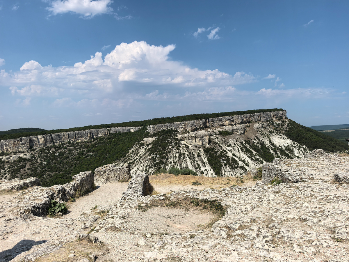 В этой статье продолжим гулять по пещерному городу. Посмотрим на красивые горы, увидим две усадьбы и ворота Восточной оборонительной стены. А ещё узнаем, почему караимы не относятся к евреям, кто и как это доказал. Ну что, пойдём дальше смотреть пещерный город? Статья написана автором канала на Дзен «Прогулки по Севастополю». Копирование или использование материалов без согласования с автором запрещены. В предыдущей статье мы с вами вышли к смотровой площадке. Виды здесь открываются потрясающие: Слева: Справа: В приближении даже дома видно: Кто-то доезжает наверх на машинах (но это место находится уже за воротами пещерного города, фото сделано в приближении): Можно даже посидеть, полюбоваться видами: На горы посмотрели, вернёмся обратно, пойдём в сторону ворот. Прямо виден колодец: Это водосборный колодец: А мы с вами повернём налево и пойдём в сторону ворот: Вот так они выглядят: Похоже, что здесь раньше крепились сами ворота: Впереди уже можно увидеть усадьбу: Информационный