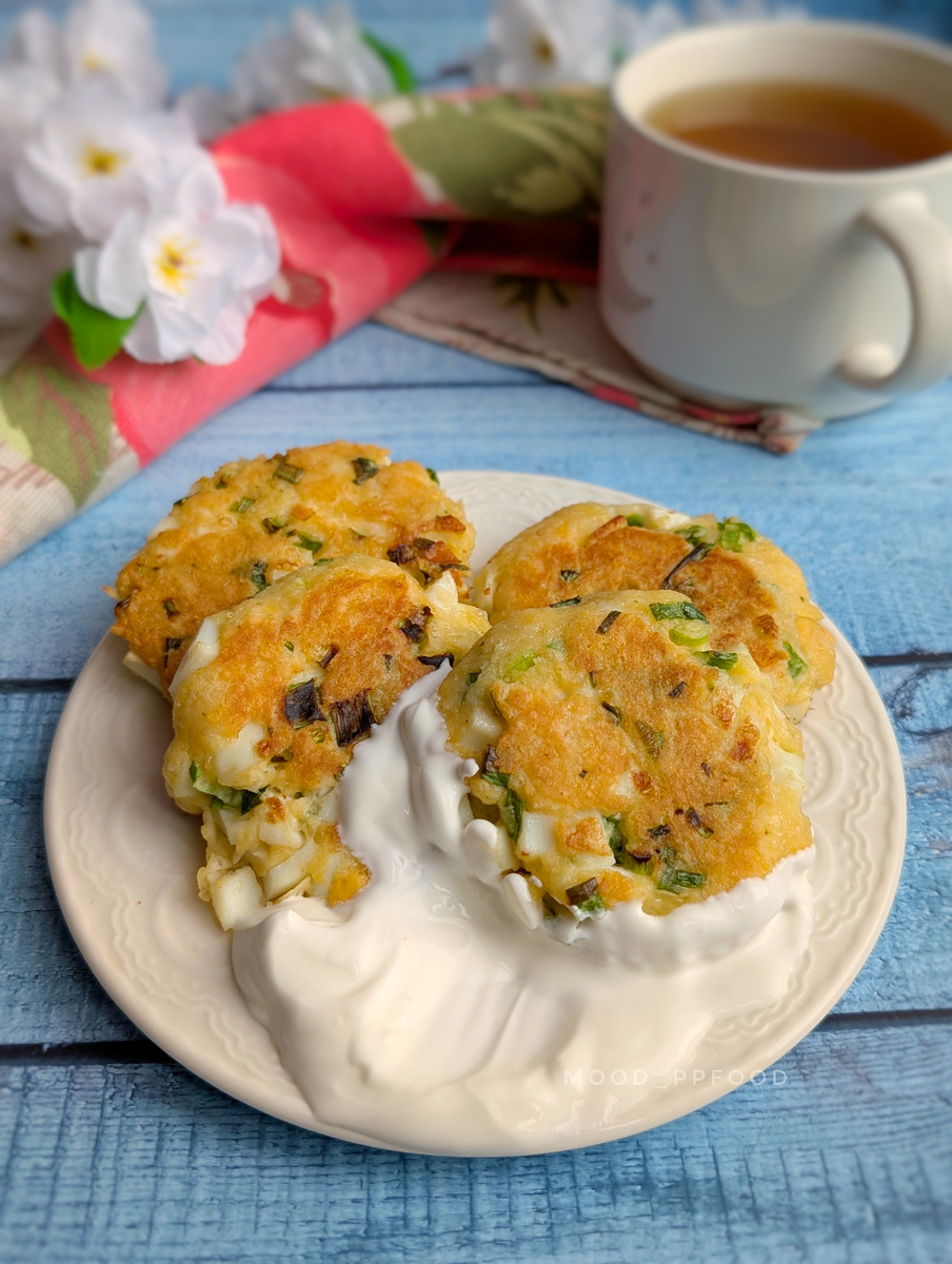 Яйцо куриное - 3 шт. Сыр лёгкий - 50 г. Мука Рисовая - 30 г. Лук зелёный - 20 г. Масло д/жарки - 5 г. 🌸 Приготовление: 1️⃣ Два яйца отвариваем, остужаем и нарезаем кубиками. 2️⃣ Сыр натираем на тёрке, перья лука измельчаем. 3️⃣ В миске соединяем: сыр, отварные яйца, лук, 30 г. муки и сырое яйцо. Всё хорошенько перемешиваем. 4️⃣ Из "теста" лепим лепёшки и выкладываем на сковороду, смазанную маслом и жарим под крышкой с двух сторон на среднем огне. Готово, приятного аппетита 😋