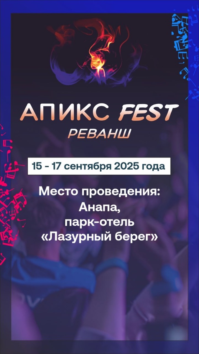 🌴 АПИКС FEST 2025 — ОТКРЫВАЕМ ЛОКАЦИЮ! 🌊 📅 15–17 сентября 📍 Анапа, парк-отель «Лазурный берег» Напоминаем, что регистрация уже открыта! 📅 Совсем скоро раскроем музыкальную программу фестиваля – следите за анонсами! #АПИКСФЕСТ2025