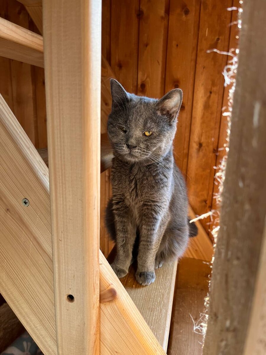 Малышку Мави выпускаю из клетки побегать . Очень жалко ее .А вечером уже загоняю в клетку и у нас процедуры и уколы .