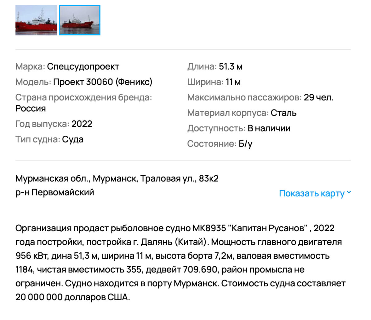 Чего только не встретишь на сайте объявлений! Читатели «Арктического Обозревателя», например, нашли объявление с продажей рыболовного судна, построенного в 2022 году в Китайской народной республике. Цена вопроса - $ 20 млн. Это уже второе объявление о продаже рыболовных судов, которое разместил рыболовецкий колхоз «Мурман» – в апреле этим продавцом было предлагалось к покупке судно 1983 года выпуска за 120 млн рублей. Как пояснили «АО» специалисты, знакомые с ситуацией, продажа судов производится в прямом смысле «за ненадобностью»: нет столько квот, чтобы держать столько судов. ❄ «Арктический Обозреватель»