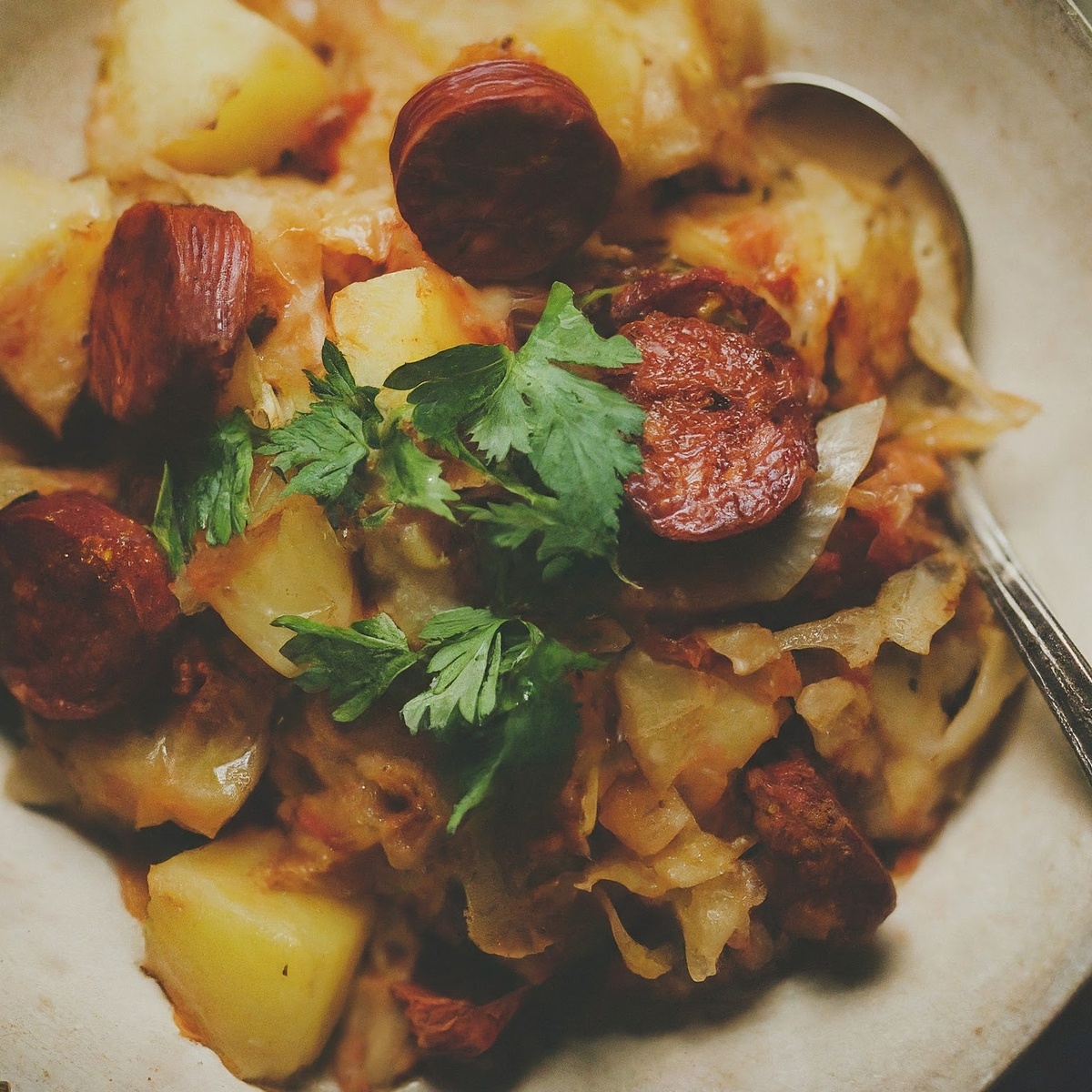 Привет, друзья! Мой эксперимент подарил мне невероятное блюдо, которое объединяет пикантные вкусы испанского чоризо и сытную немецкую квашеную капусту. Картофель, ароматные специи и хрустящий чоризо создают идеальный баланс текстур и вкусов! Это блюдо стало хитом на моей кухне — сытное, ароматное и идеальное для ужина. Готовы к кулинарному путешествию? Записывайте этот фьюжн-рецепт! Этот скиллет — идеальный фьюжн: хрустящий чоризо и копченая паприка приносят испанскую страсть, а квашеная капуста и картофель добавляют немецкую сытность. Тмин и тимьян создают теплый аромат, а петрушка освежает вкус. Я готовил это блюдо для друзей, и все были в восторге от такого необычного сочетания! Это сытное, ароматное и простое блюдо, которое идеально для ужина с изюминкой. Попробуйте этот испано-немецкий рецепт и расскажите в комментариях, как он вам удался! Какие еще кухни вы бы хотели смешать в следующем блюде? #рецепты #фьюжнкухня #кулинария #вкусныйужин #чоризо