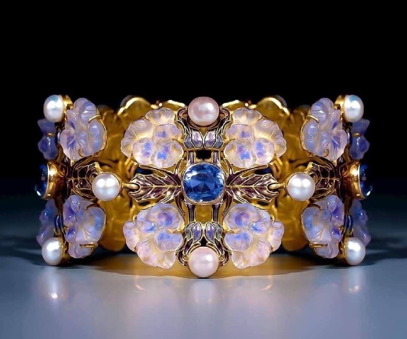 Рене Лалик Знаменитый браслет «Анютины глазки», 1900-е Золото, сапфиры, стекло, эмаль, жемчуг