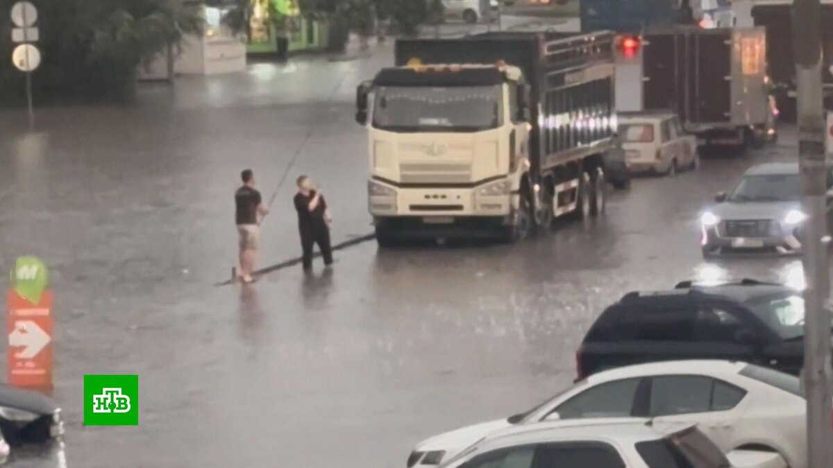 [ Смотреть видео на сайте НТВ ] На Новосибирск обрушился мощный ливень с грозой и сильным ветром. От непогоды пострадали несколько районов, включая центр города. Вода затопила основные магистрали, что спровоцировало многокилометровые пробки. Многие жители не смогли вовремя добраться домой. Также стихия частично размыла дамбу моста. Проезд по нему ограничили, место размыва огородили. Непогода привела к аварийным отключениям света, но энергоснабжение восстановили. Сильные дожди ожидаются на юге России. В Сочи и на федеральной территории Сириус пройдут ливни. Уровень воды в реках может повыситься до неблагоприятных отметок. И всё это на фоне 40-градусной жары. Похожая погода — жара и мощные дожди с грозами — прогнозируется в Ставрополье, Карачаево-Черкесии, Кабардино-Балкарии, Чечне, Ингушетии. Дождливая погода сохранится и в Москве. Сегодня осадки будут умеренными, а вот в субботу и воскресенье снова ожидаются сильные ливни, которые будут идти до середины следующей недели. При этом будет