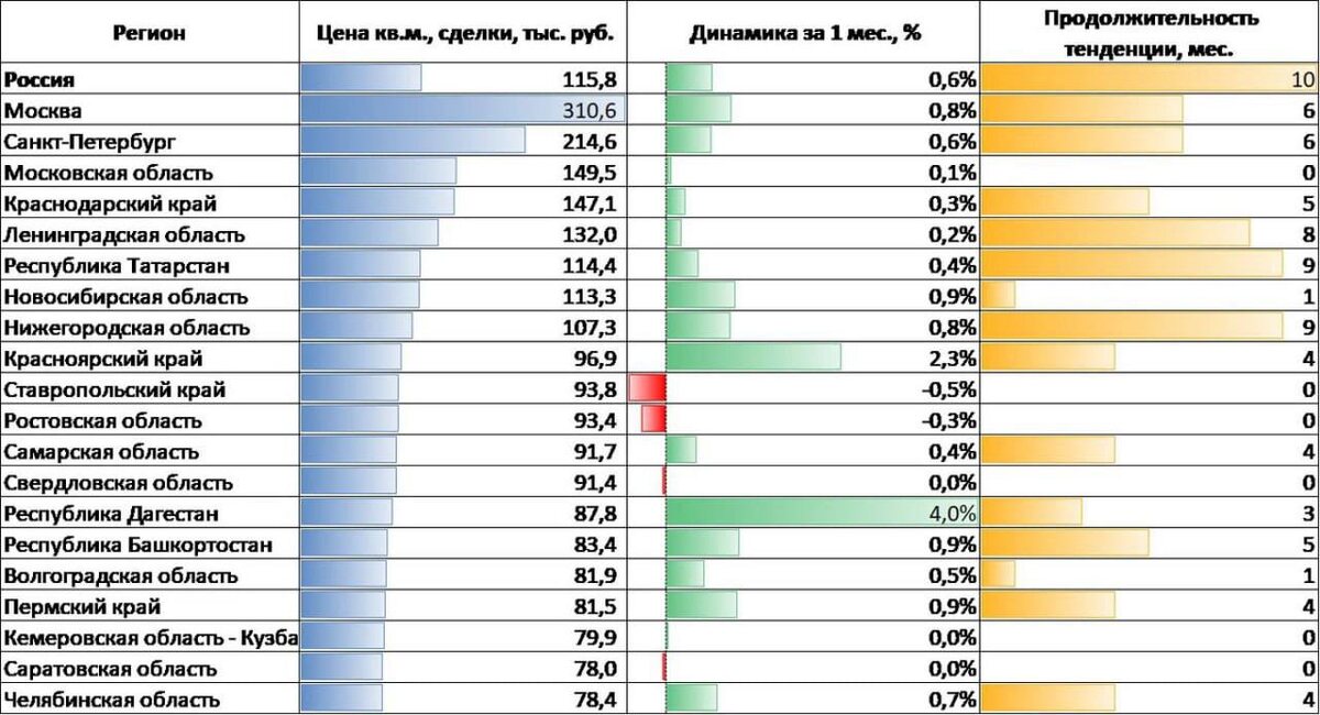 📊 Квадратный метр всё дороже: «Домклик» признал вторичку лидером роста, но видит шансы на снижение цен. ℹ️ В июне 2025 года средняя цена «квадрата» на первичном рынке выросла на 0,9% - до 175 000 ₽/м², подсчитали аналитики «Домклик». Лидеры роста: Нижегородская (+2,1%), Москва (+1,9%), Татарстан и Петербург (+1,5%). Падение цен зафиксировано лишь в Воронежской (–0,3%) и Пензенской (–0,2%) областях ⚡️ Разрыв между ценами в объявлениях и реальными сделками на новостройки вырос с 11,3% до 12,2%. Самый большой «прайс‑гэп» в Башкортостане (+26,5%), Москве (+23,9%), Татарстане (+17,2%), Калининграде (+15,3%) и Петербурге (+14,2%). Только в Ленинградской (–4,2%), Воронежской (–2,1%) и Ростовской (–1,1%) областях квартиры продают дороже, чем рекламируют. 🏘 На вторичном рынке «квадрат» подорожал на 0,6% — до 115 800 ₽/м². Рост идёт с сентября 2024 года, а годовой прирост после отмены «Господдержки‑2020» составляет 6,4%, опережая новостройки. 🔥 Самые горячие вторичные рынки:Дагестан (+4,0%