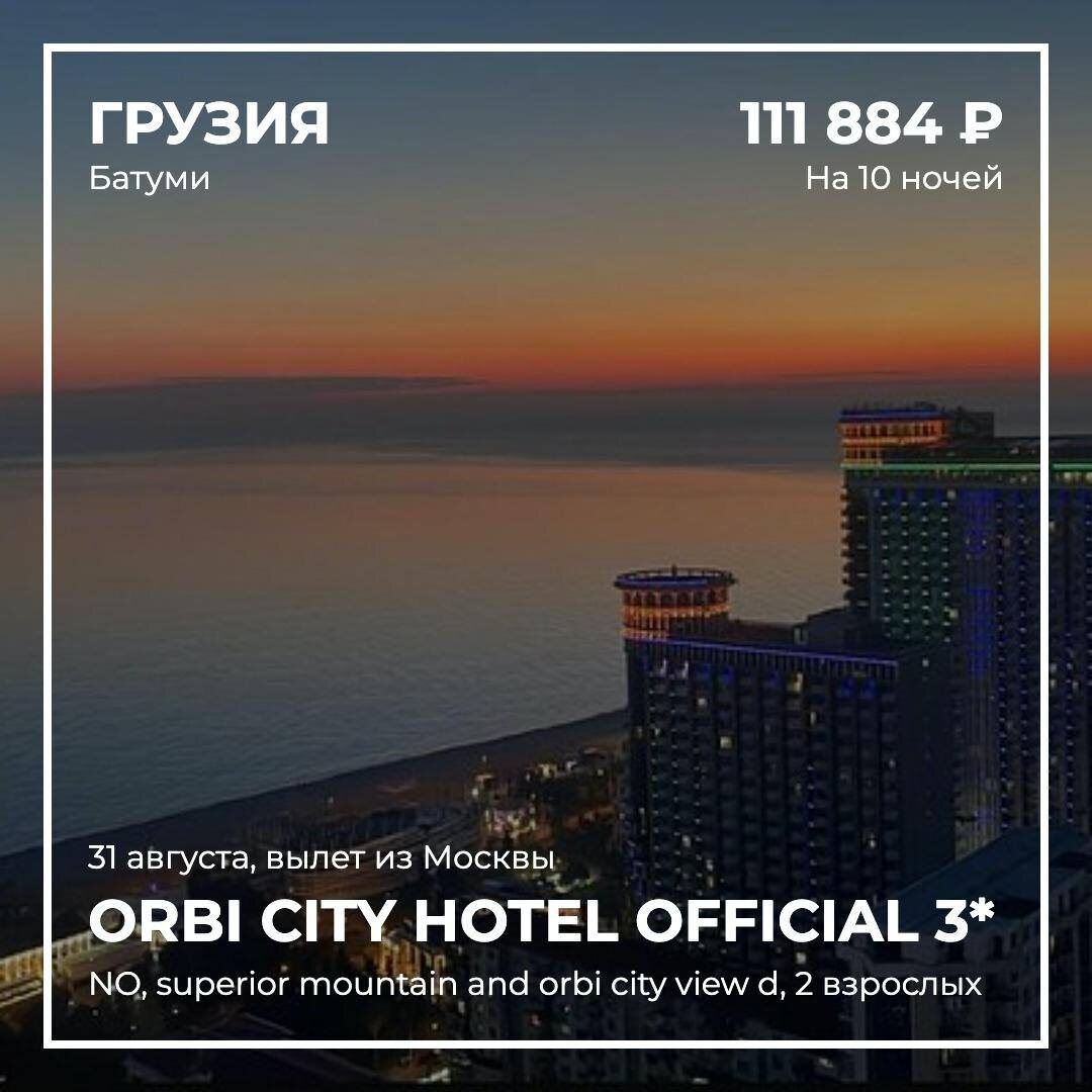 Orbi City Hotel Official 3* Грузия, 🇬🇪 Батуми❗️ Апартаменты в небоскрёбе с потрясающим видом с высоты причьего полёта‼️на море и горы в апарт-комплексе ORBI City 37 этажей! Большая лоджия с мебелью и видом на незабываемые на закаты‼️🌆 🌅 Комната 38 м2 в комнате есть дополнительные спальные места ( 2+2) Безлимитный интернет. ‼️ Первая линия‼️ Пляж 50 метров❗️ Набережная 50 метров Оснащение: Wi-Fi, чайник, холодильник, микроволновка, стиральная машина, кондиционер, телевизор, фен, утюг, необходимая посуда. Ближайший фитнес центр с бассейном 100 метров. Ближайшее казино - 100 метров 😀❗️ Актуальные цены и наличие на интересующие Вас даты Отвечаю быстро. Организую и помогу спланировать ваш отдых в Грузии. Потрясающей красоты город на берегу Черного моря перед грядой Кавказских гор.‼️ https://api.whatsapp.com/send?phone=79030097240