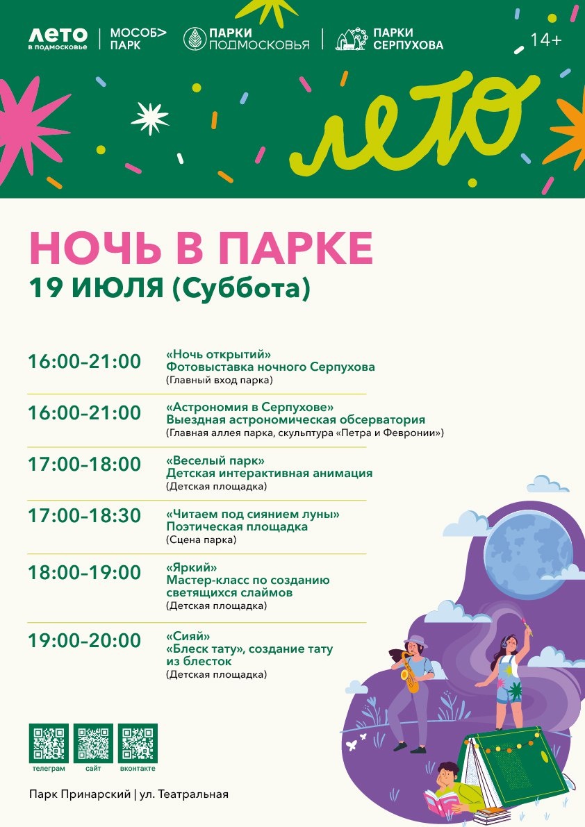 ✨ Фестиваль "НОЧЬ В ПАРКЕ" 🌳Парк им. Олега Степанова 🌳Парк Принарский 🕓16:00-21:00 Что вас ожидает? ⭐Арт-выставки ⭐Открытый микрофон ⭐Мастер-класс по художественному искусству от Кирилла Назарова ⭐Выставка художника-акварелиста Екатерины Коваленко ⭐Ораторский курс для начинающих ⭐Мастер-класс по танцам от студии исторического танца "Ренессанс" ⭐Кинопоказ ⭐Медитация под открытым небом ⭐Флаговое шоу ⭐Концертная программа ⭐Выездная астрономическая обсерватория ⭐Поэтическая площадка ⭐Детская анимация И многое другое 📆 19.07.2025 🕒 16:00 💰 Вход свободный❗️ ⭐Разместить публикацию ⭐Поддержать канал голосом ✅ Мероприятия Серпухов https://dzen.ru/id/66f01c6eb4c6fe60c9ca1608 http://vk.com/serpukhov_events http://dzen.ru/serpukhov_events