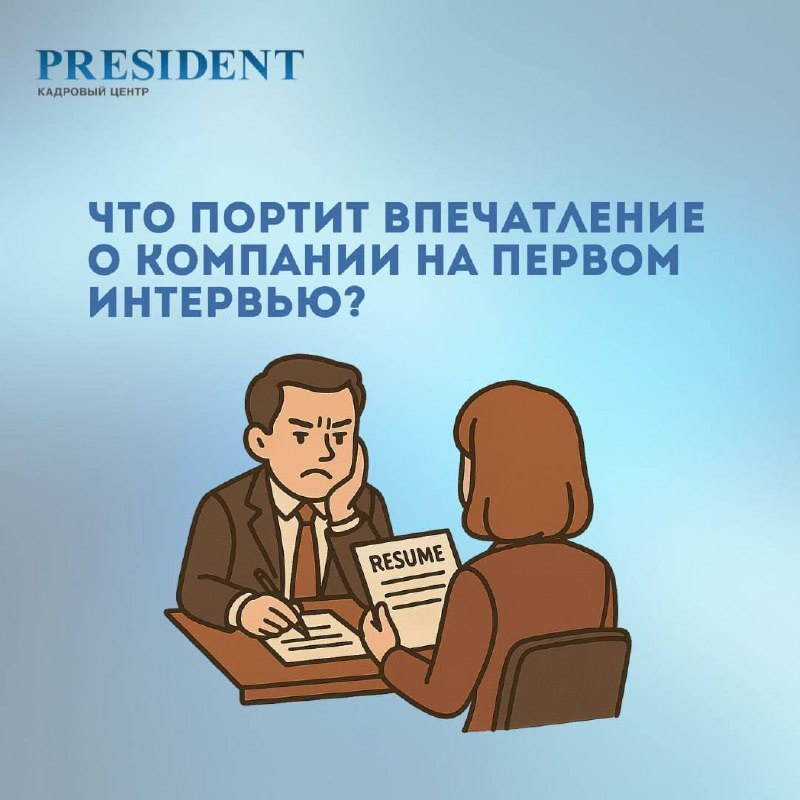 Подборка: Что портит впечатление о компании на первом интервью Многие работодатели думают: «Кандидат должен стараться понравиться нам». Но сильные специалисты тоже оценивают вас — с первой минуты общения. И иногда именно детали на интервью заставляют их выбрать другую компанию. Что чаще всего отталкивает соискателей? Мы собрали реальные «сигналы», которые портят впечатление о компании ещё до оффера. Смотрите карточки и проверьте, не встречаются ли они у вас. #карточки #PRESIDENT #кадровыйцентрPRESIDENT #подборперсонала #HRсоветы #интервью #работодатель #репутациякомпании #оценкакандидатов #рекрутинг