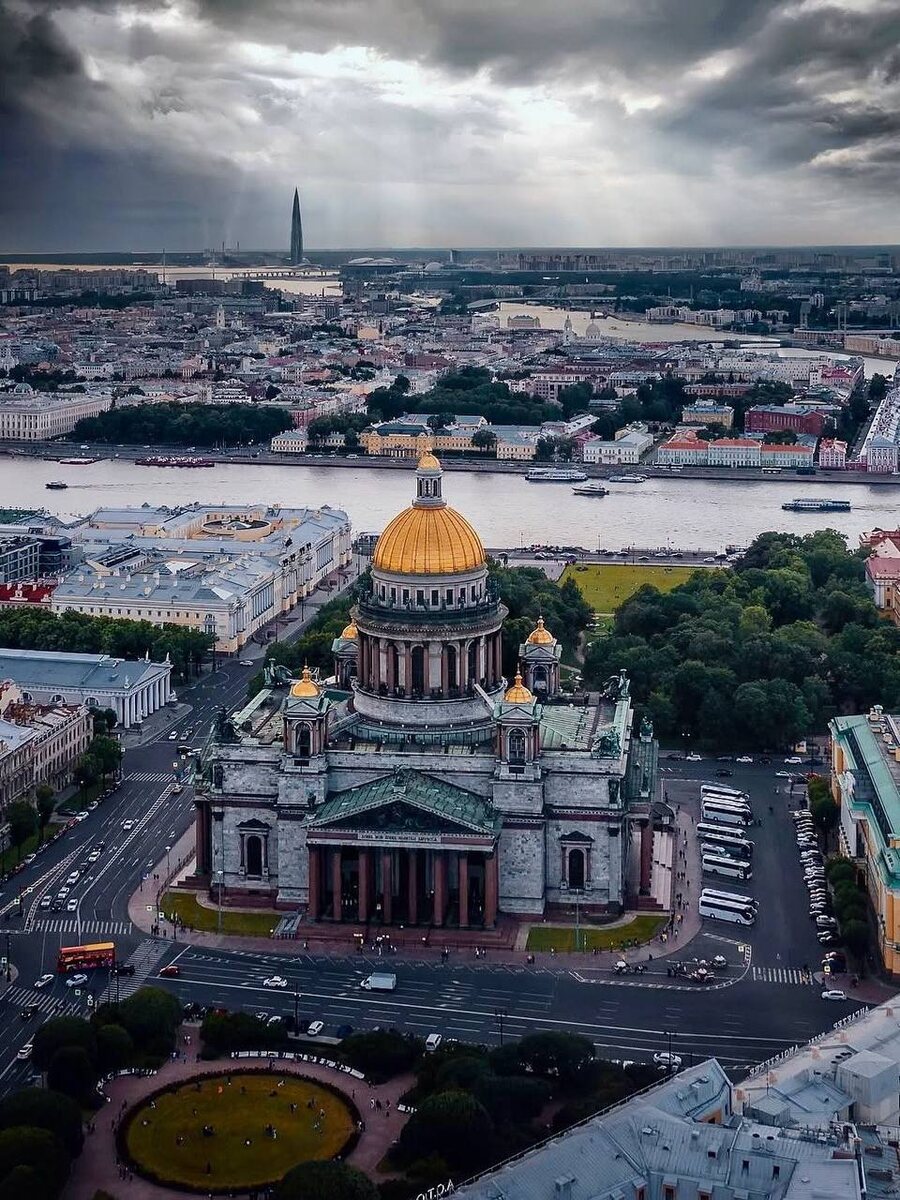 🦅 Санкт-Петербург с высоты птичьего полёта Это завораживающая симфония архитектуры, воды и света. Узоры улиц напоминают паутину времени, а крыши домов, увенчанные куполами и шпилями, как будто шепчут истории прошлых веков. Сверху особенно ясно видна изящная геометрия Невского проспекта, уходящего в горизонт, и невиданная грация разводных мостов, перекинутых через сотни каналов. С высоты Петербург не просто город – он дыхание истории, поэзия камня и воды, застывшая музыка имперской мечты. 🇷🇺Русский патриот💪