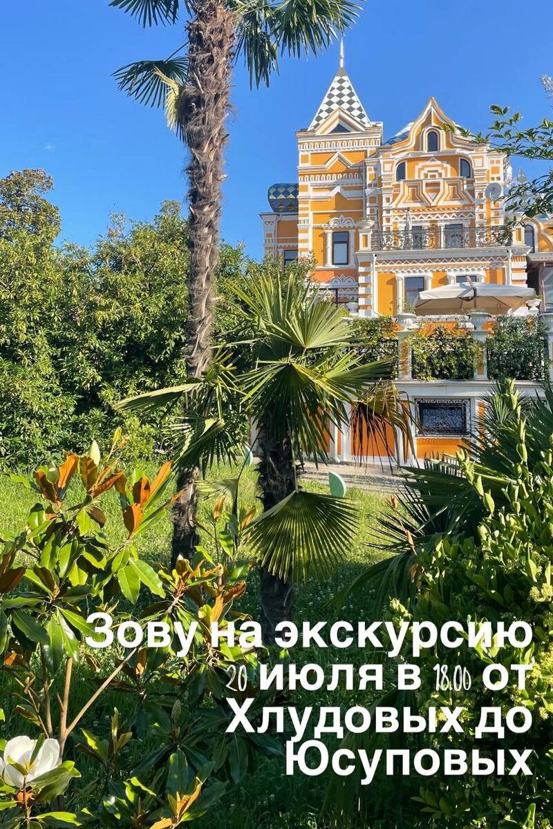 Ах, какие дачники жили бы в Сочи, если бы не случилась революция. Вот скажем, идем мы по улице Орджоникидзе, когда-то Московской и видим дом князей Юсуповых. Вспоминаем проклятие рода: из наследников мужского пола до 26 лет доживет только один. Этот один в Сочи заезжал, скандальный Феликс Феликсович. В 1912 году со своим Лондонским другом. А за 4 года до этого, на дуэли погиб его родной брат Николай. Был застрелен мужем Марины Гейден, чья мать Александра Владимировна Мусина-Пушкина была владелицей участка в Сочи в районе нынешнего пансионата Нева. То место и зовут Мусино-Пушкинской балкой. В воскресенье 20 июля в 18.00 во время экскурсии поговорим о династия Хлудовых и Мамонтовых, и про Юсуповых тоже. Приходите