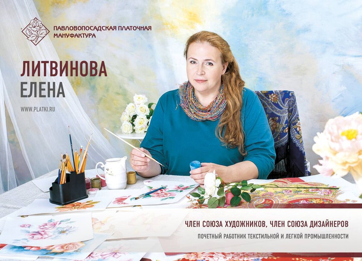 🎂 Сегодня свой День рождения отмечает наша талантливая художница Елена Литвинова! 💐 Ее мастерство и любовь к цветам нашли отражение в многочисленных работах и помогли реализовать творческие фантазии на платочной мануфактуре. Узнаваемый стиль художницы наполнен яркостью и живостью, в нём сочетаются тонкое внимание к деталям и умение передать настроение через цветовые решения. 🖼️ Работы Елены Николаевны — это нежный разговор с традицией, воплощённый в цветах, линиях и композициях. 🥳 Поздравляем Елену Николаевну с Днём рождения! Пусть вдохновение и дальше сопровождает в творчестве, а каждый новый день приносит радость и яркие идеи для новых работ! Счастья, здоровья и новых художественных свершений! 🔎 Читать биографию художницы: https://platki.ru/about/artists/litvinova/ Все платки с рисунками Елены Литвиновой (имеющиеся в наличии) 📸 На фото платки: «Подмосковье»; «Река любви»; «Улыбка принцессы»; «В мире любви»; «Июль»; «Город роз»; «У родного дома»; «Поэма»; «Песенка весенне