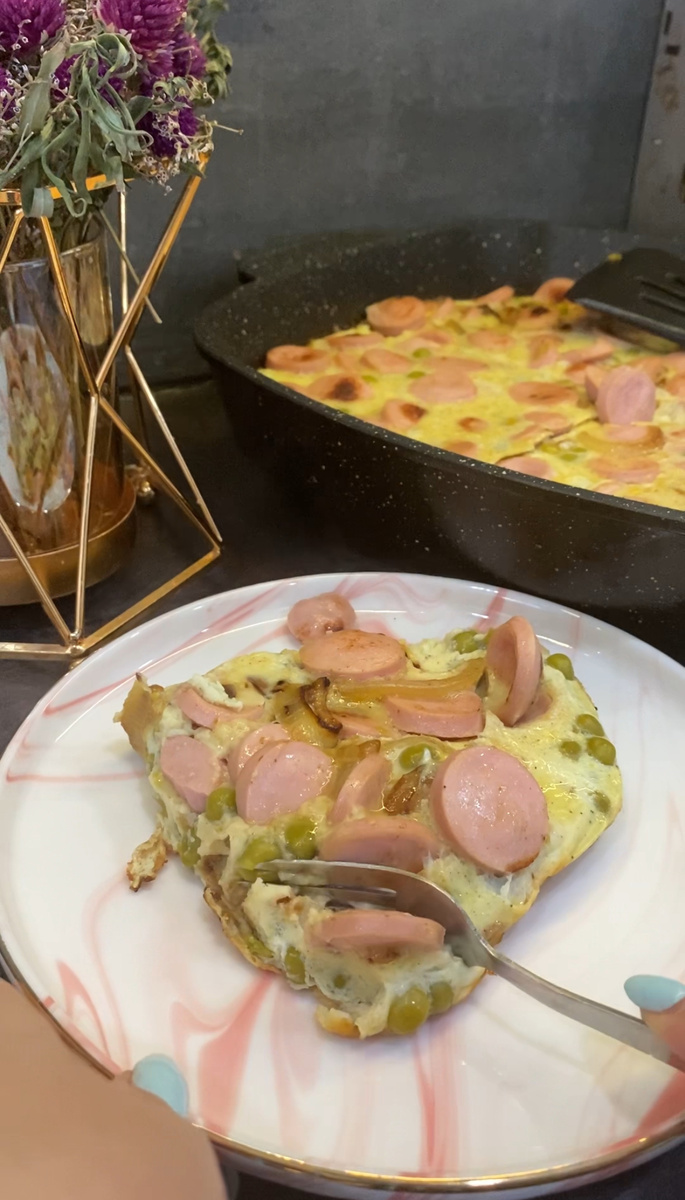 В своем ТГ канале делюсь праздничным сборником рецептов и конструктором по сборке 1000+ салатов на каждый день, а также своими полезными покупками на ВБ! Присоединяйся по ссылке в шапке профиля🤗 Нам понадобится: ~ Яйца 6 шт. ~ Лук 1 шт. ~ Сосиски 450 гр. ~ Зеленый горошек 1 банка ~ Соль и чёрный перец по вкусу ~ Масло для жарки 30 мл. (У меня гхи) Приготовление: Обжариваем сначала лук до легкой золотистости, затем добавляем сосиски нарезанные кружочками. Жарим, постоянно помешивая, пару минут и добавляем горошек. Взбиваем яйца вилкой. Солим, перчим, перемешиваем и заливаем яйцами. Разравниваем, убавляем огонь на минимум и закрываем крышкой. Ждём пока не схватятся яйца. Примерно 7-10 минут. И вуаля, вкусный и сытный завтрак готов!