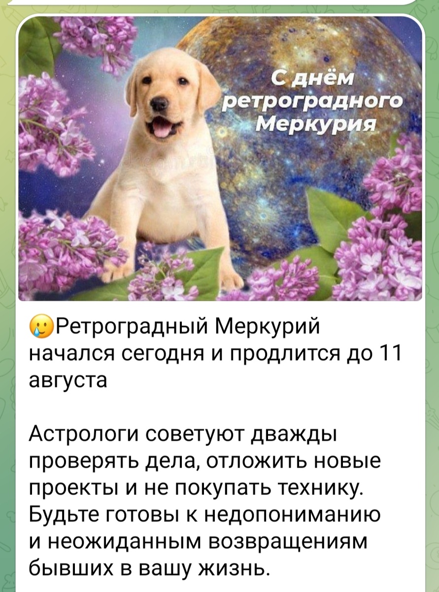 Но в Интернет залезла и про ретроградный Меркурий почитала. Что это и с чем едят😄. Интересно стало мне.