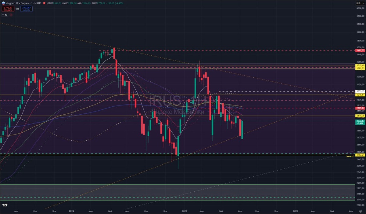 Если до вечера ничего не поменяется, то закрываем неделю очень сильной свечой-поглощением, которая на 95% сигнализирует о том, что на новой неделе еще выше пойдем. Если отойти от бесшумного теханализа, то оно вполне очевидно. На новой неделе решение ЦБ по ставке, где уже ждут чуть ли не снижения до 17%. Я не берусь прогнозировать ставку, но технически мы готовы оформлять кульминацию отскока на новой неделе, выносить остатки шортов (а их еще немало) и идти снова по тренду на снижение. Колебания становятся все меньше и меньше... Жду обновление минимумов декабря. Но есть еще в голове и альтернативные сценарии с более сильным выносом наверх, но пока о них говорить рано. Самое главное, что я сейчас придерживаюсь на рынке - это живу ожиданиями в 2-3 дня. Дальше заглядывать особо нет смысла и просто по пути собирать копеечку.